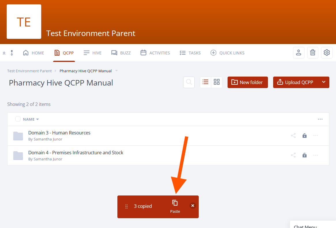 All Pharmacy Administrators and Standard members of Pharmacy Hive are able to copy a QCPP file, a folder, or multiple QCPP files/folders from one pharmacy to another pharmacy, or within the same Pharmacy. In addition, the use of cut/paste can be used to move QCPP files or folders.
