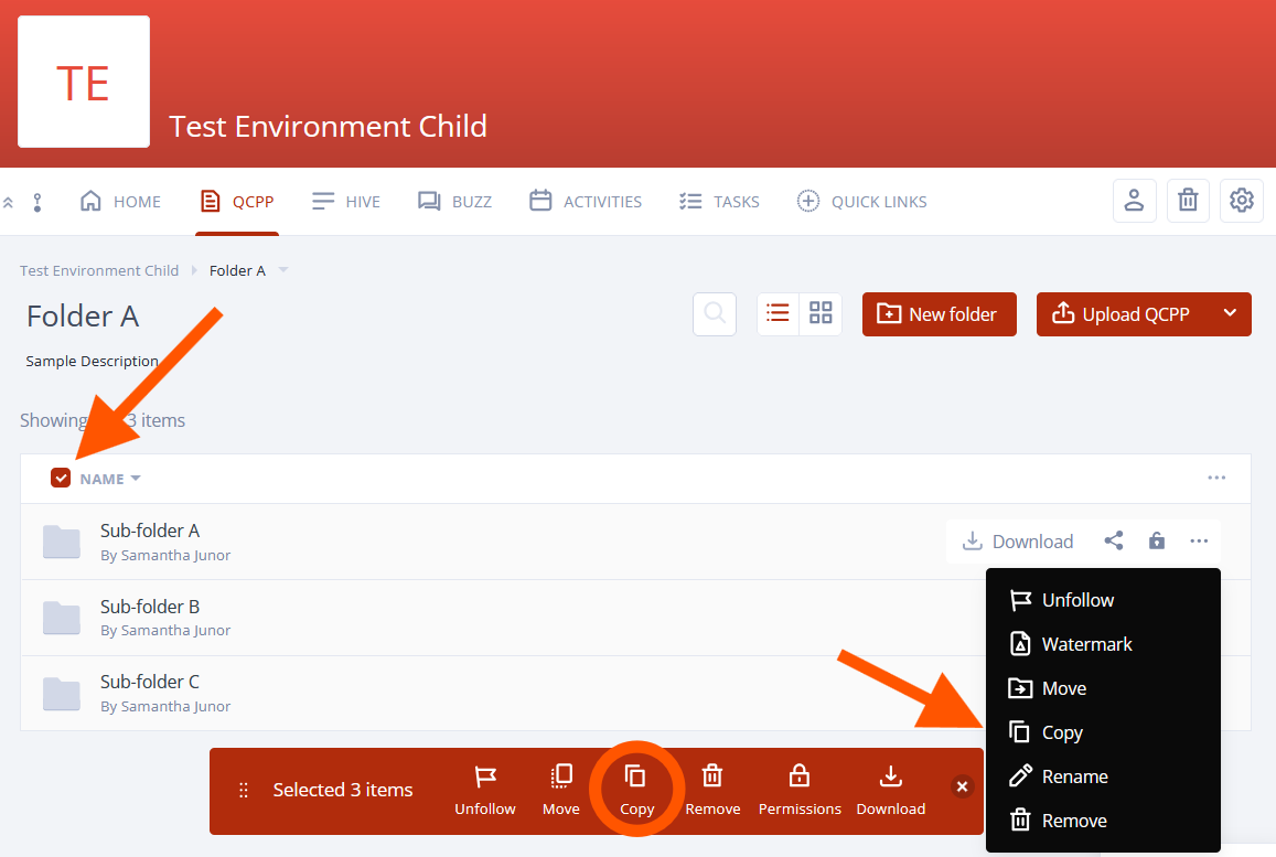 Either select the QCPP file or click on the 3 dots icon and press ‘copy’