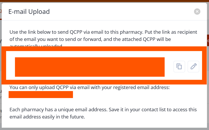 The email address must be connected to a user with permission to upload QCPP files to the Pharmacy.